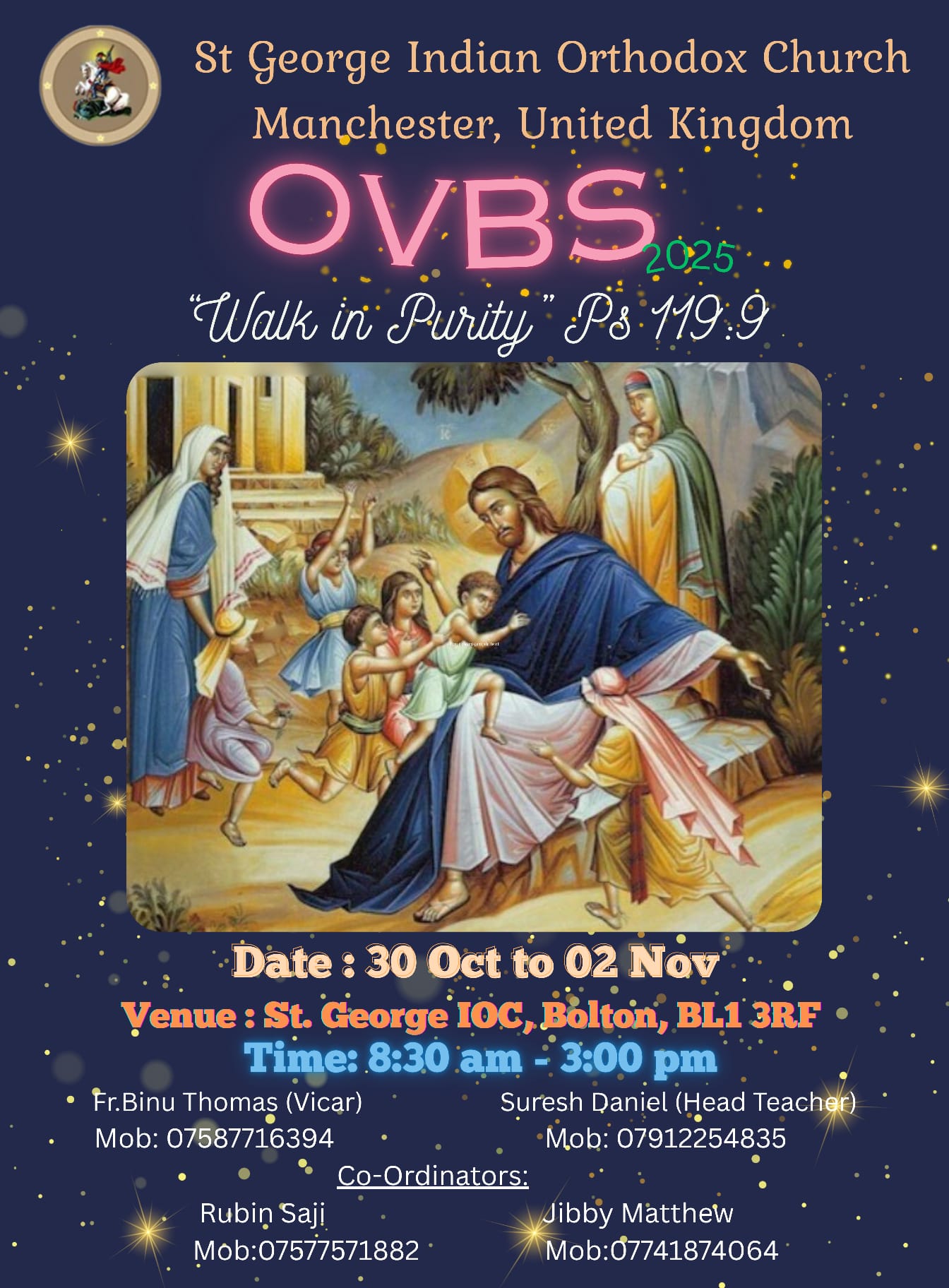 We are excited to announce that our church will be hosting the Orthodox Vacation Bible School (OVBS) 2025 from 30th October to 2nd November. This year’s theme is “Walk in Purity” (Psalm 119:9), reminding us of the importance of living a life rooted in God’s word.