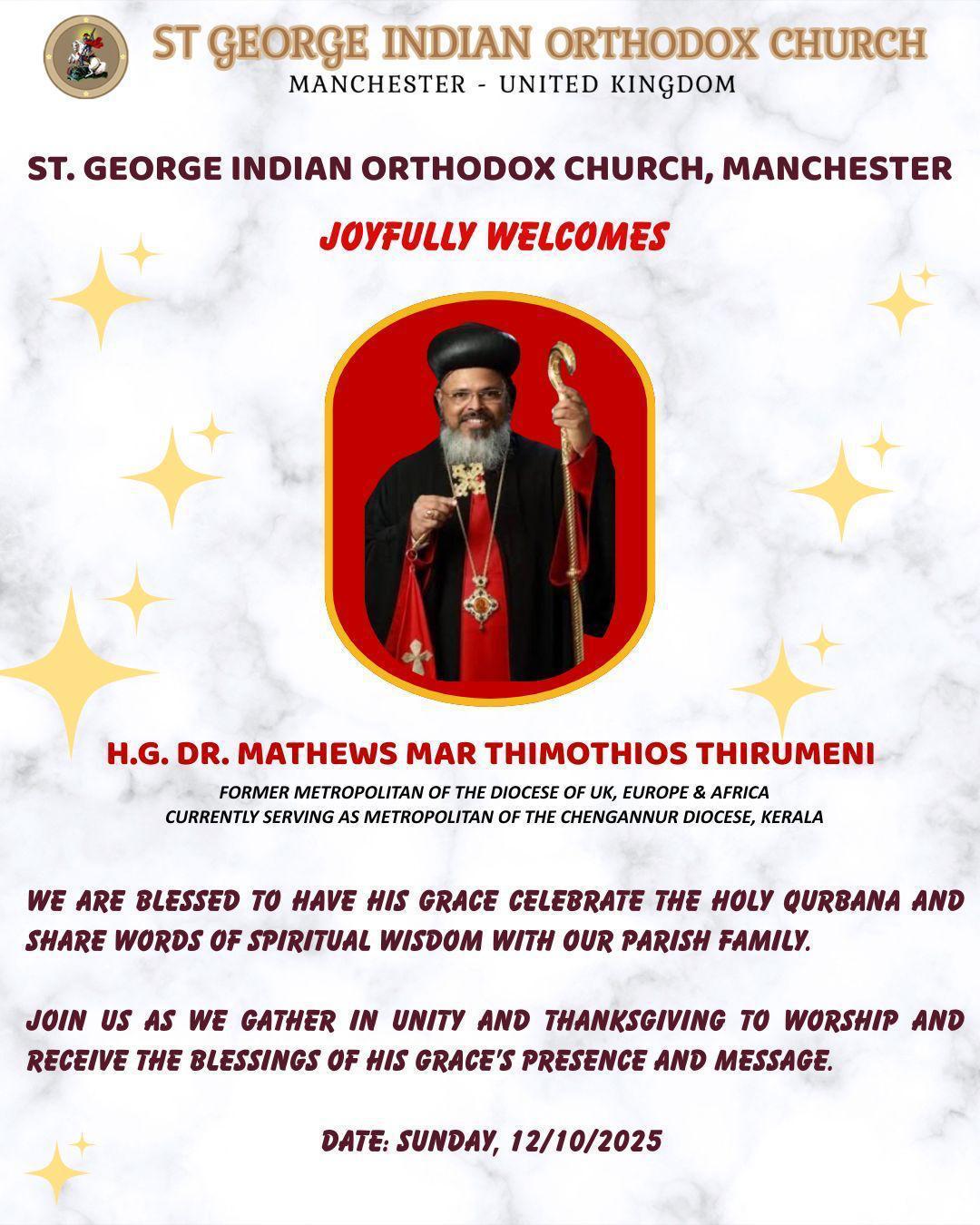 We are delighted to welcome H.G. Dr. Mathews Mar Thimothios Thirumeni on Sunday, 12th October 2025.